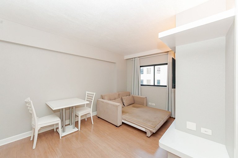 Apartamento estilo Flat muito aconchegante e espaçoso, 35m², localizado em uma das melhores regiões da cidade, no Centro vizinho ao Batel, próximo a restaurantes, bares, shoppings.