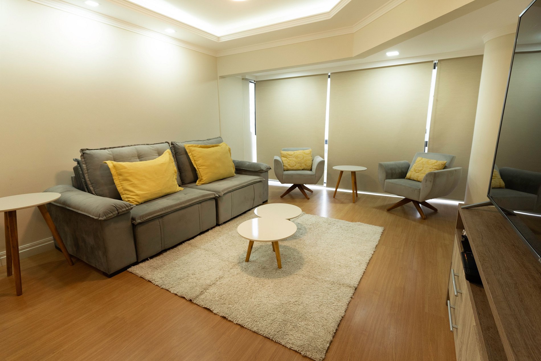 - 02 suites + 01 bedroom (all with Queen bed); - 03 complete bathrooms; - Full kitchen with granite countertops, refrigerator with freezer, stove, electric oven, microwave, coffee maker, pans and all utensils; - 01 private parking space (can accommodate up to two medium cars); - Air conditioning in 02 suites; - 75'' LCD TV (CLARO cable with 150 channels) in the living room + 02 SMART TVs 39'' in two suites; - Laminate flooring in the living room and bedrooms, granite in the kitchen and laundry area, porcelain tiles in the bathrooms; - Internet WiFi NET 100 MB; - Laundry room with washer and dryer, vacuum cleaner and iron; - Beach chairs (05) and umbrella; - Building with alarm and remote monitoring cameras; - Bed linen, bath and face towels, floors and tea towels (all included in the package) - Maximum capacity of 6 guests including children over 04 years old; - I do not rent to groups of men (03 or +) or young people under the age of 30;