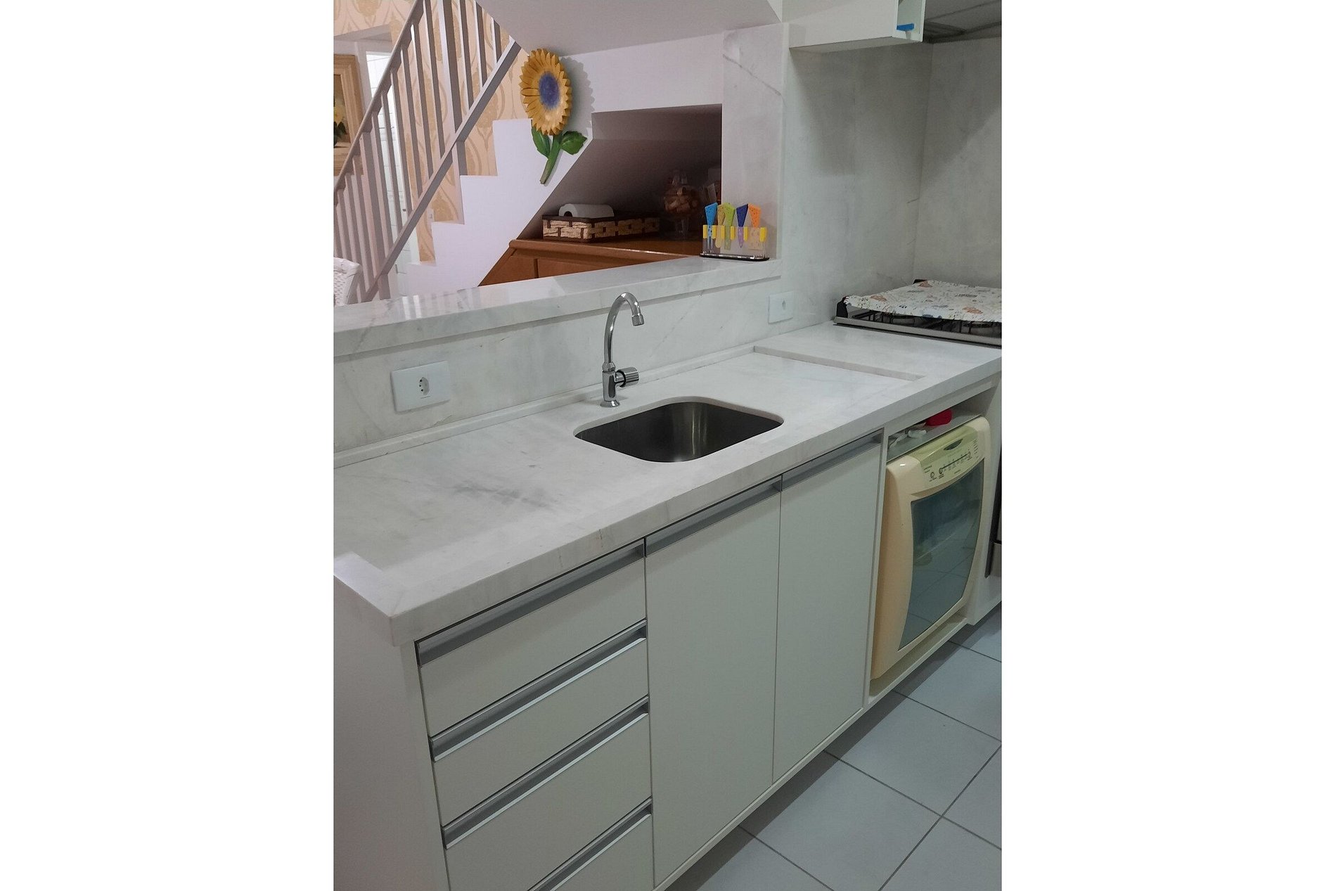 - Cozinha completa tipo americana com bancada de granito, geladeira com freezer, fogão, forno elétrico, micro-ondas, panelas e todos os utensílios;