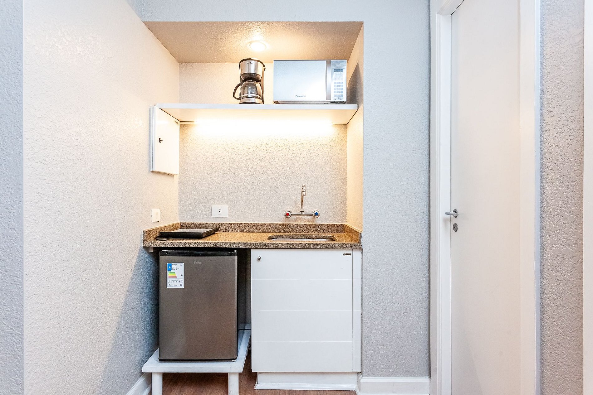 O prédio também conta com lavanderia com máquina de lavar e secar (cobrado à parte, somente sabão líquido) e um mini mercado.