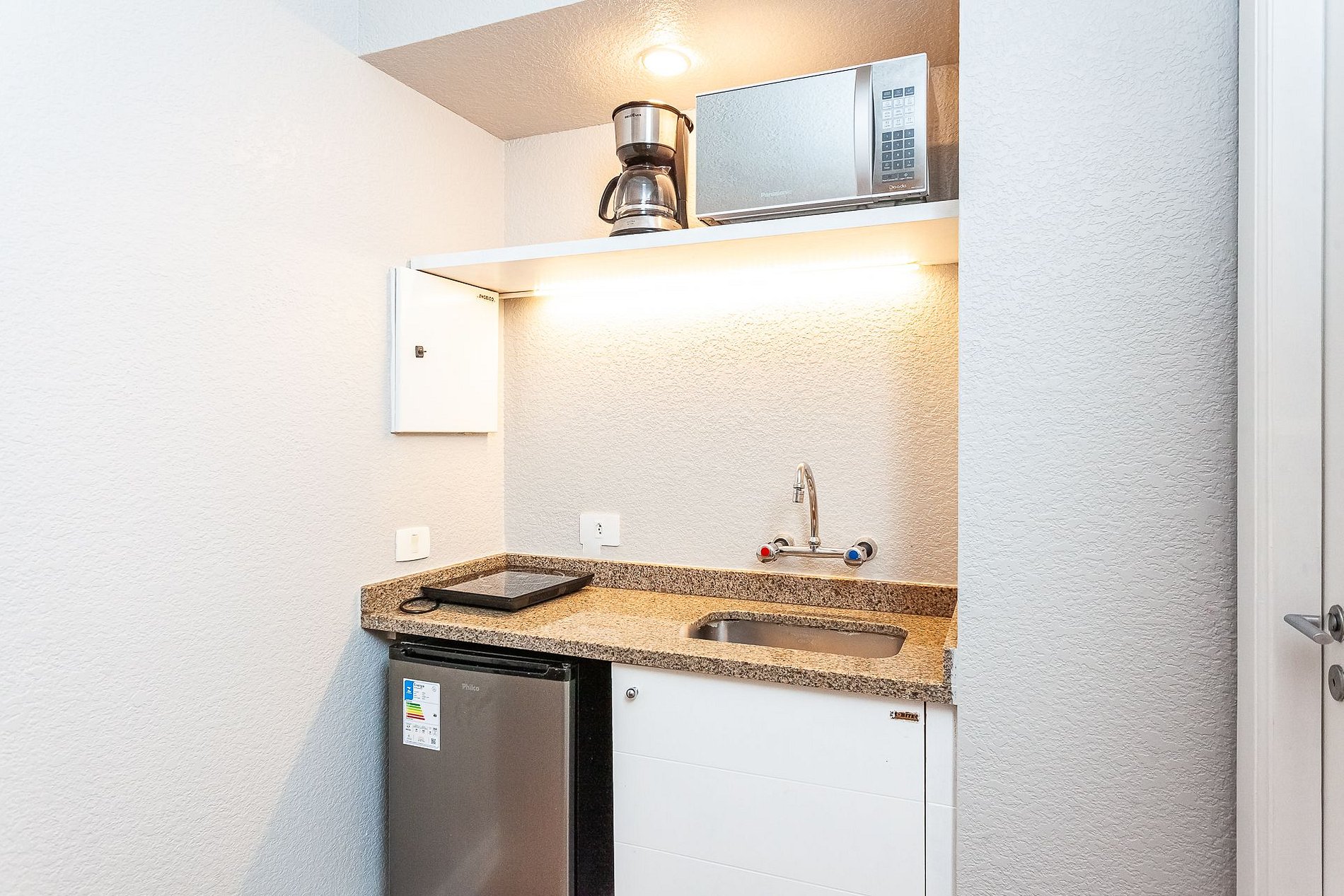 O prédio também conta com lavanderia com máquina de lavar e secar (cobrado à parte, somente sabão líquido) e um mini mercado.