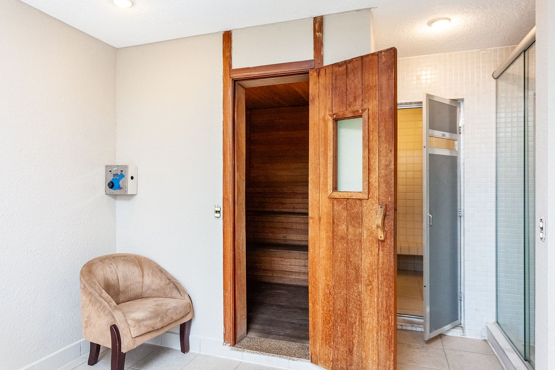 Os hóspedes poderão usufruir da estrutura do prédio que conta na cobertura com Piscina coberta com aquecimento quebra gelo, sauna, academia, além de uma belíssima vista da cidade de Curitiba.