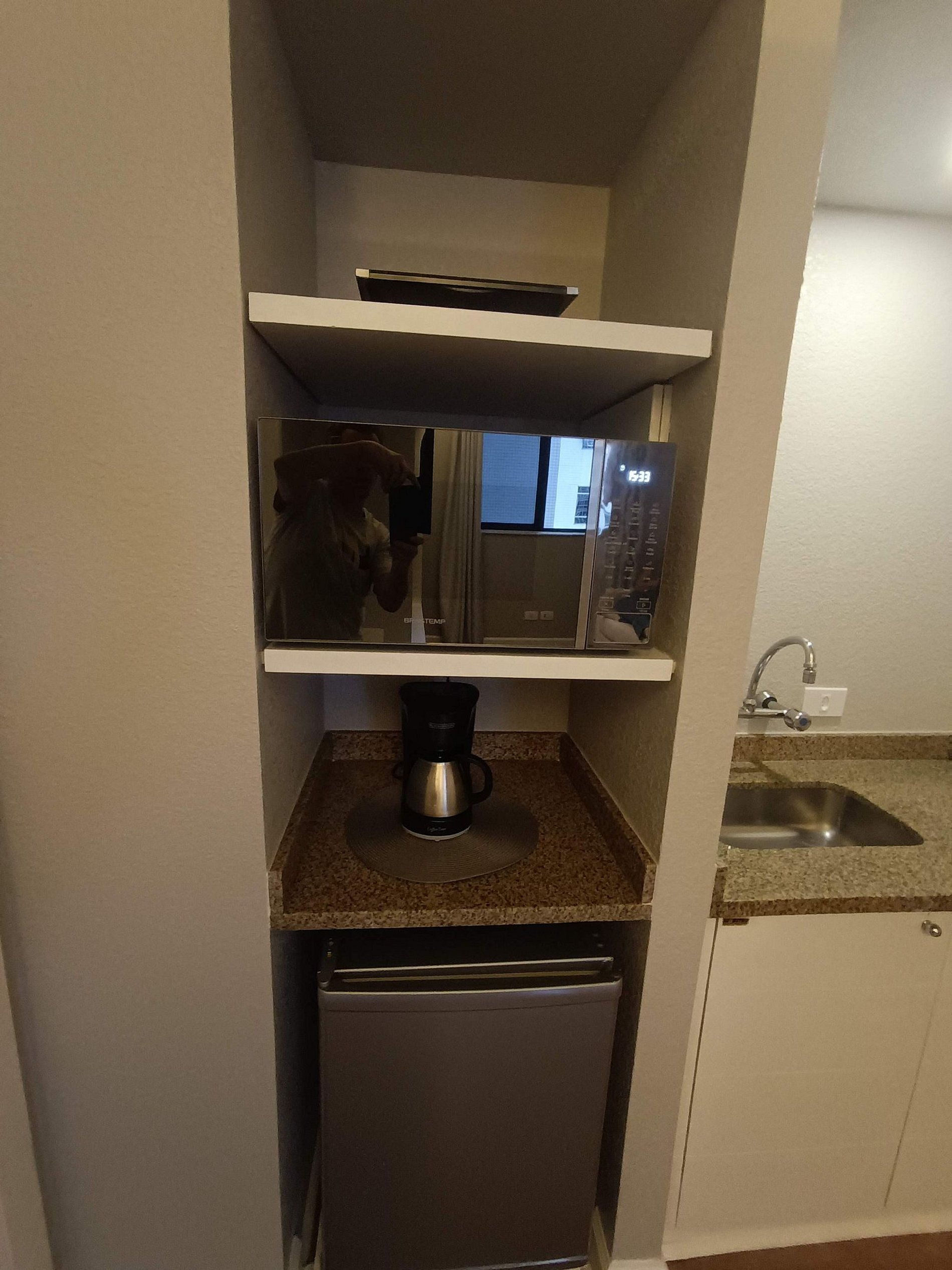 O prédio também conta com lavanderia com máquina de lavar e secar (cobrado à parte, somente sabão líquido) e um mini mercado.