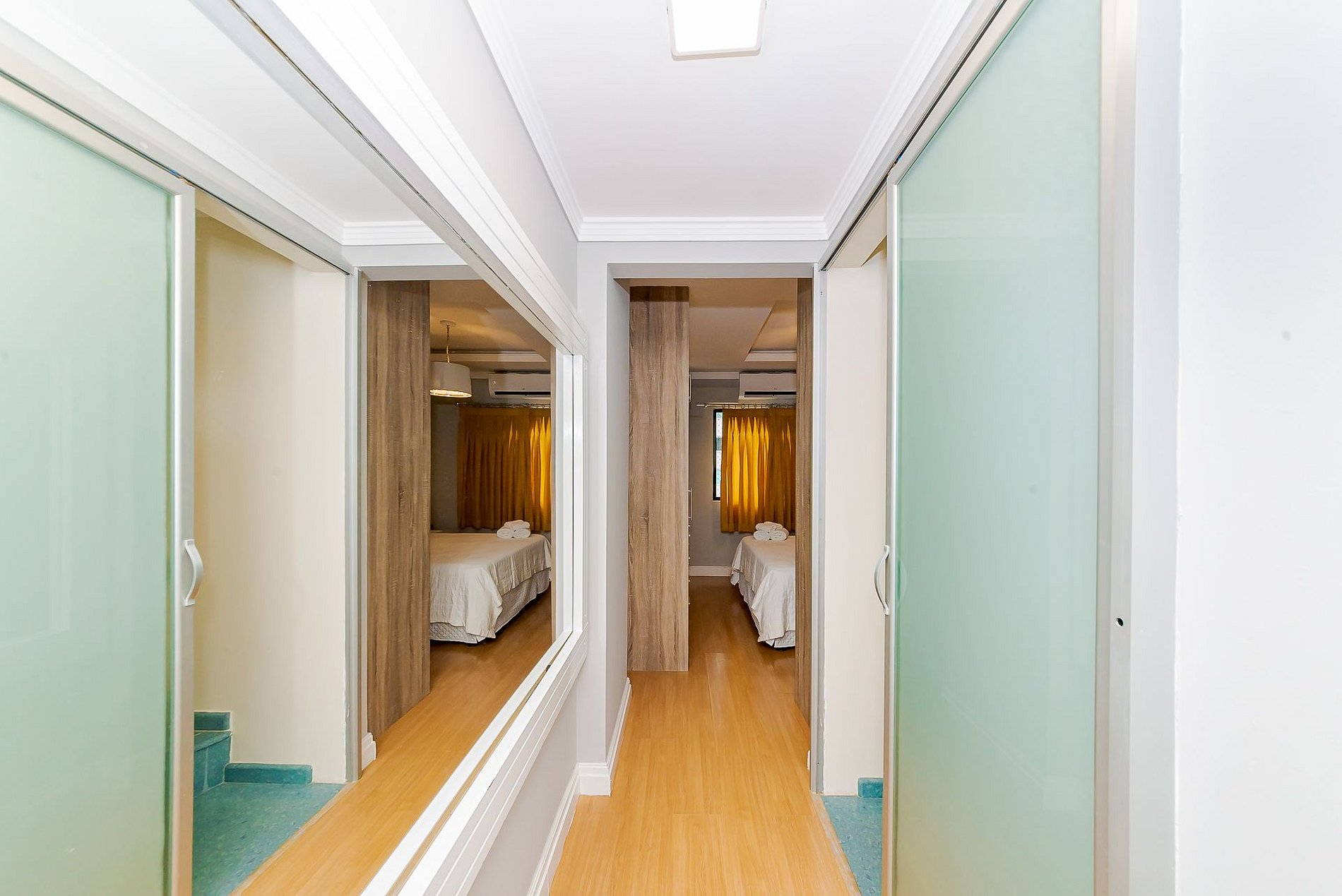 - 02 suítes + 01 quarto, todos com cama de casal Queen e Ar Condicionado Split quente/frio;
