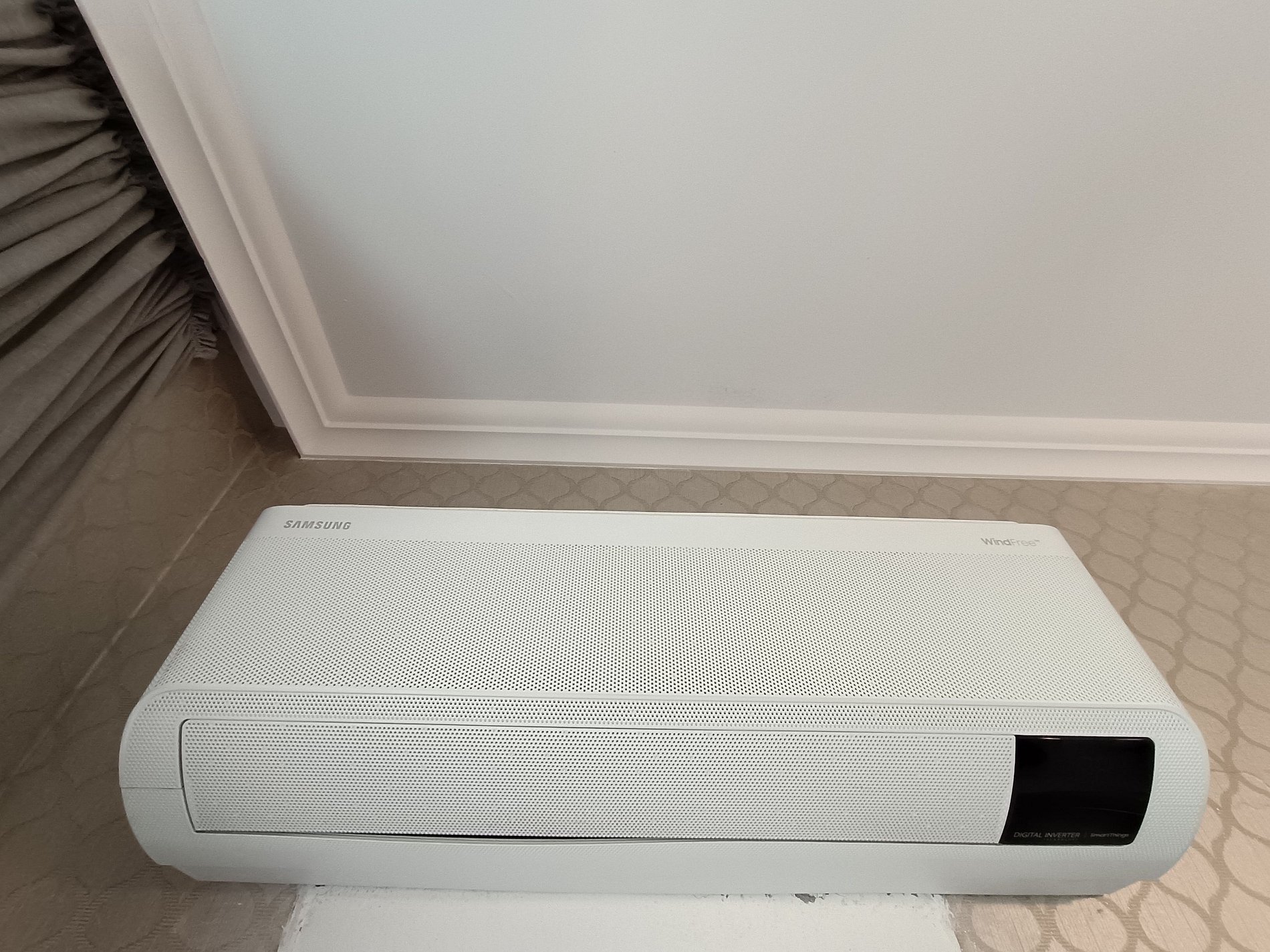 Três quartos, sendo uma suíte, todos com ar-condicionado split, e três banheiros completos.