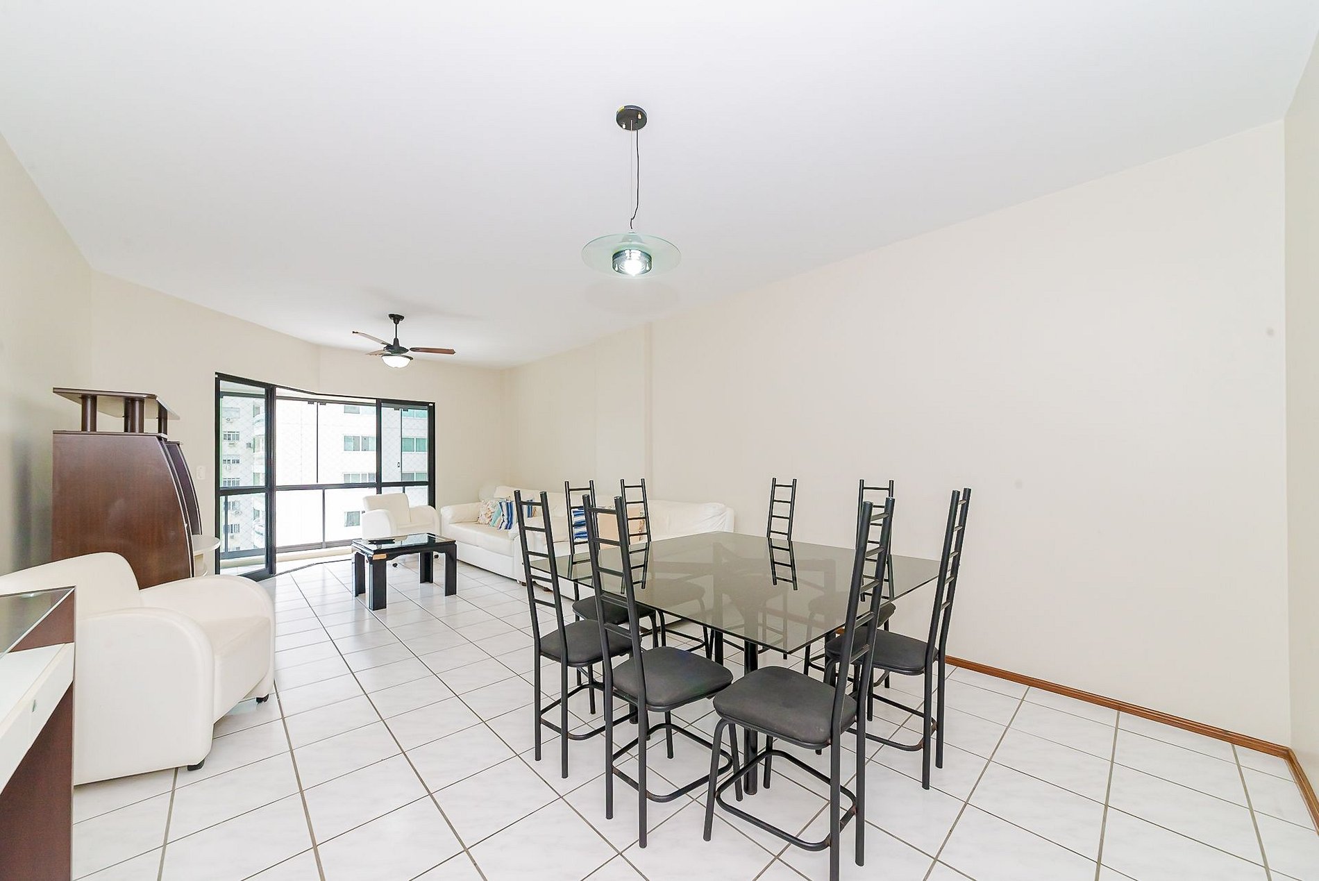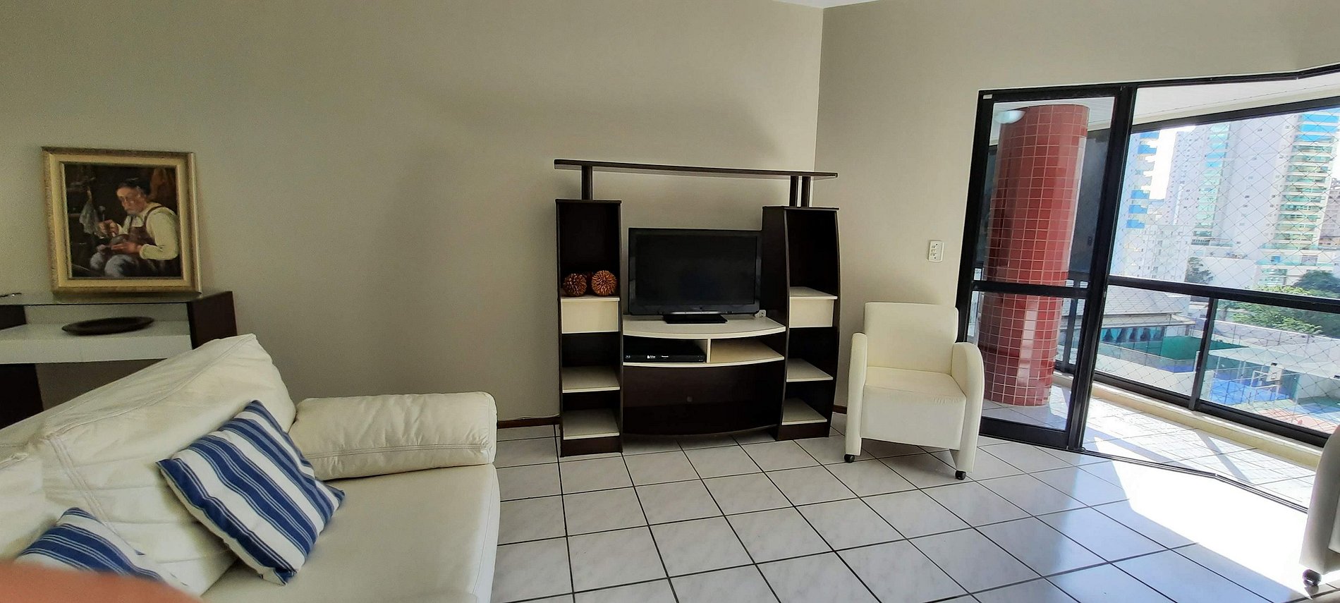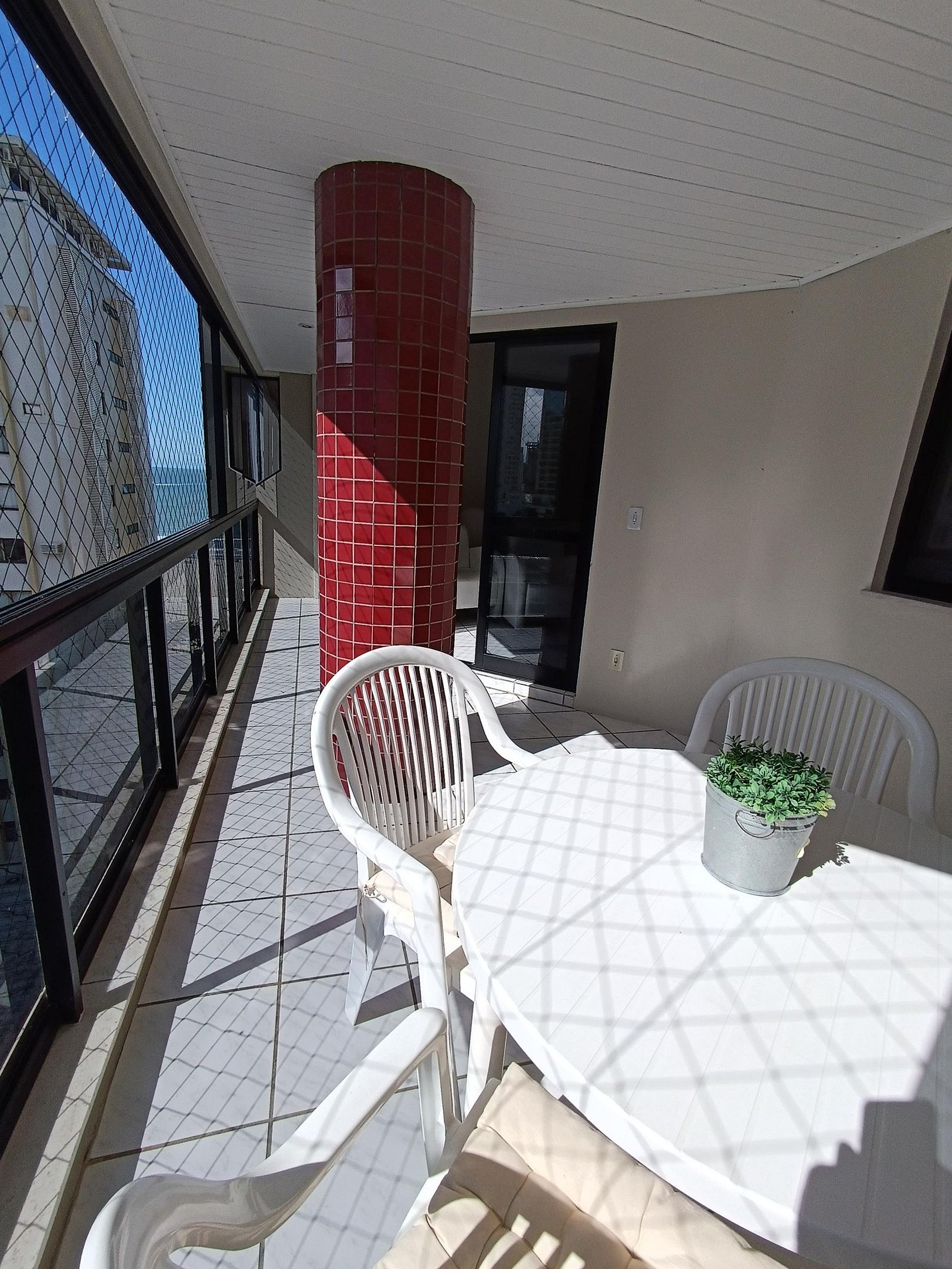 A sacada com linda vista está anexa a sala de jantar e estar, com TV 42''' e Wi-Fi.