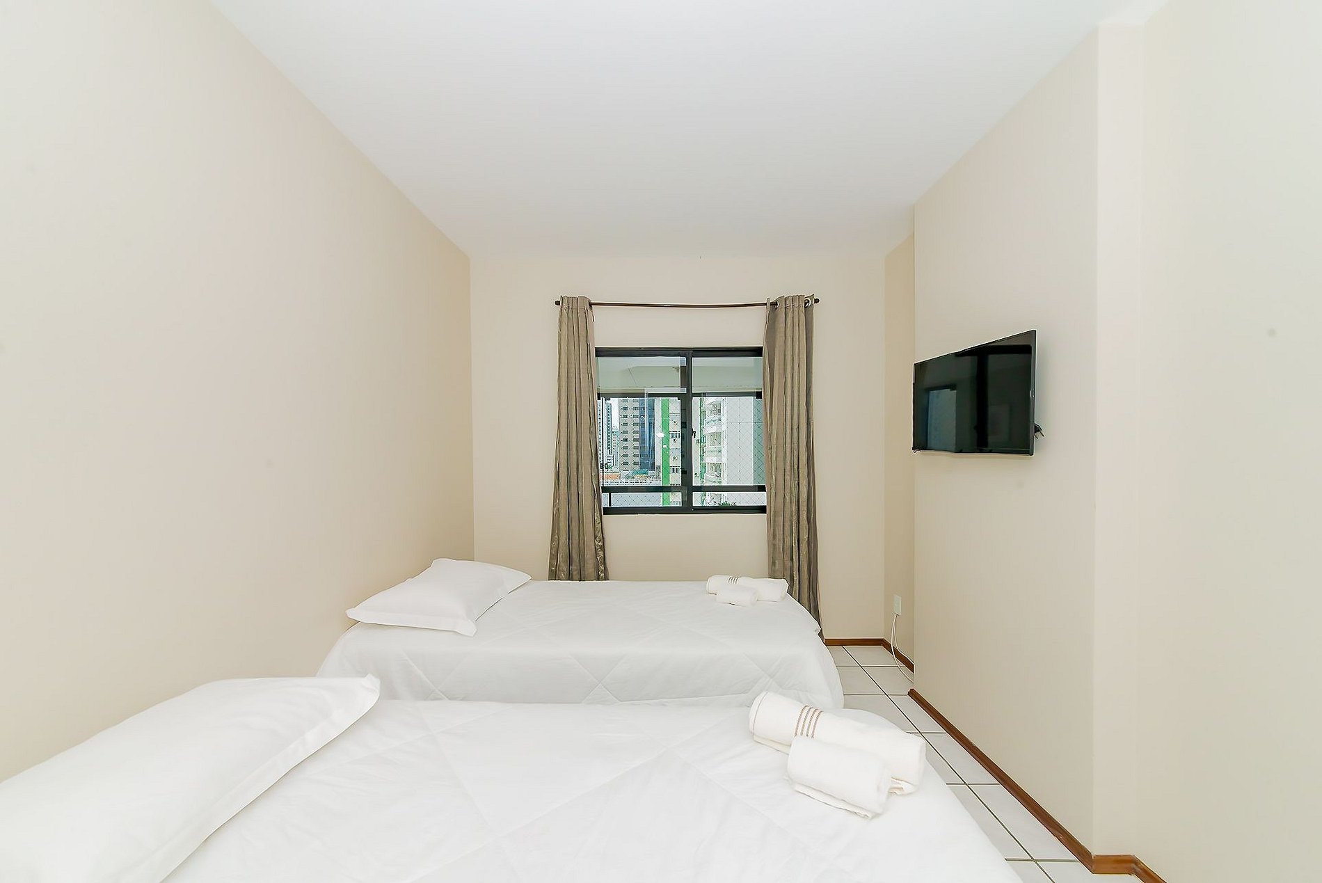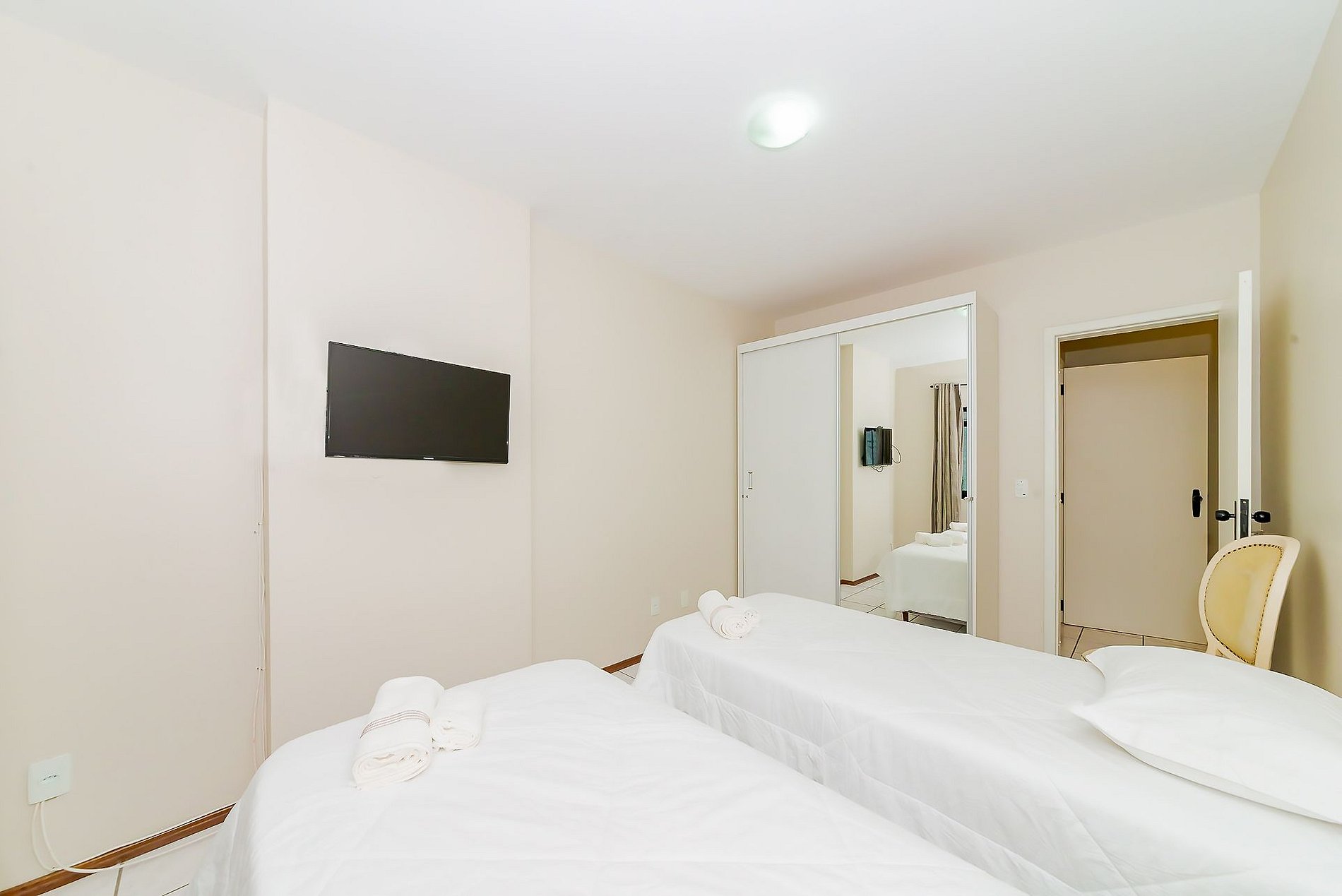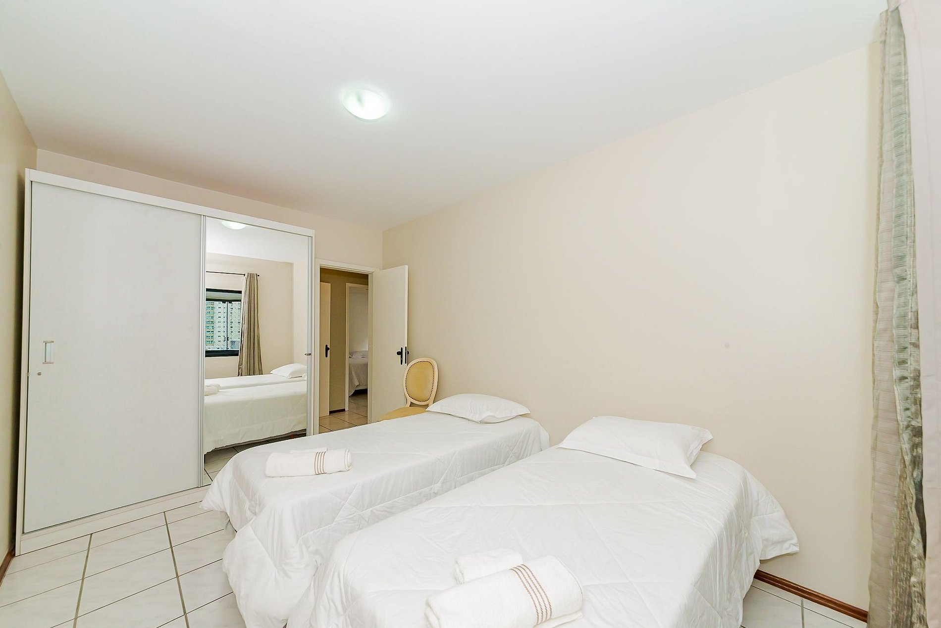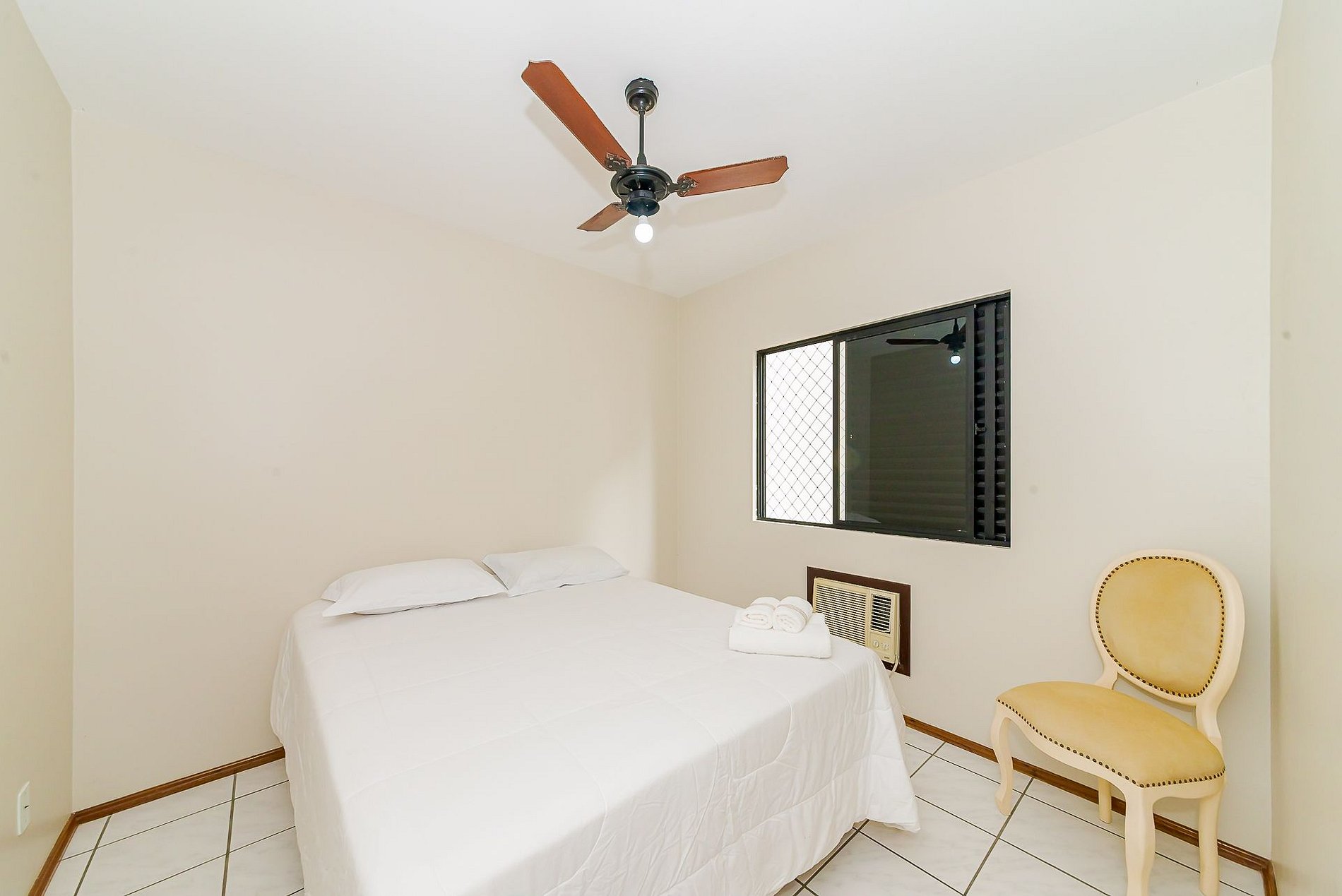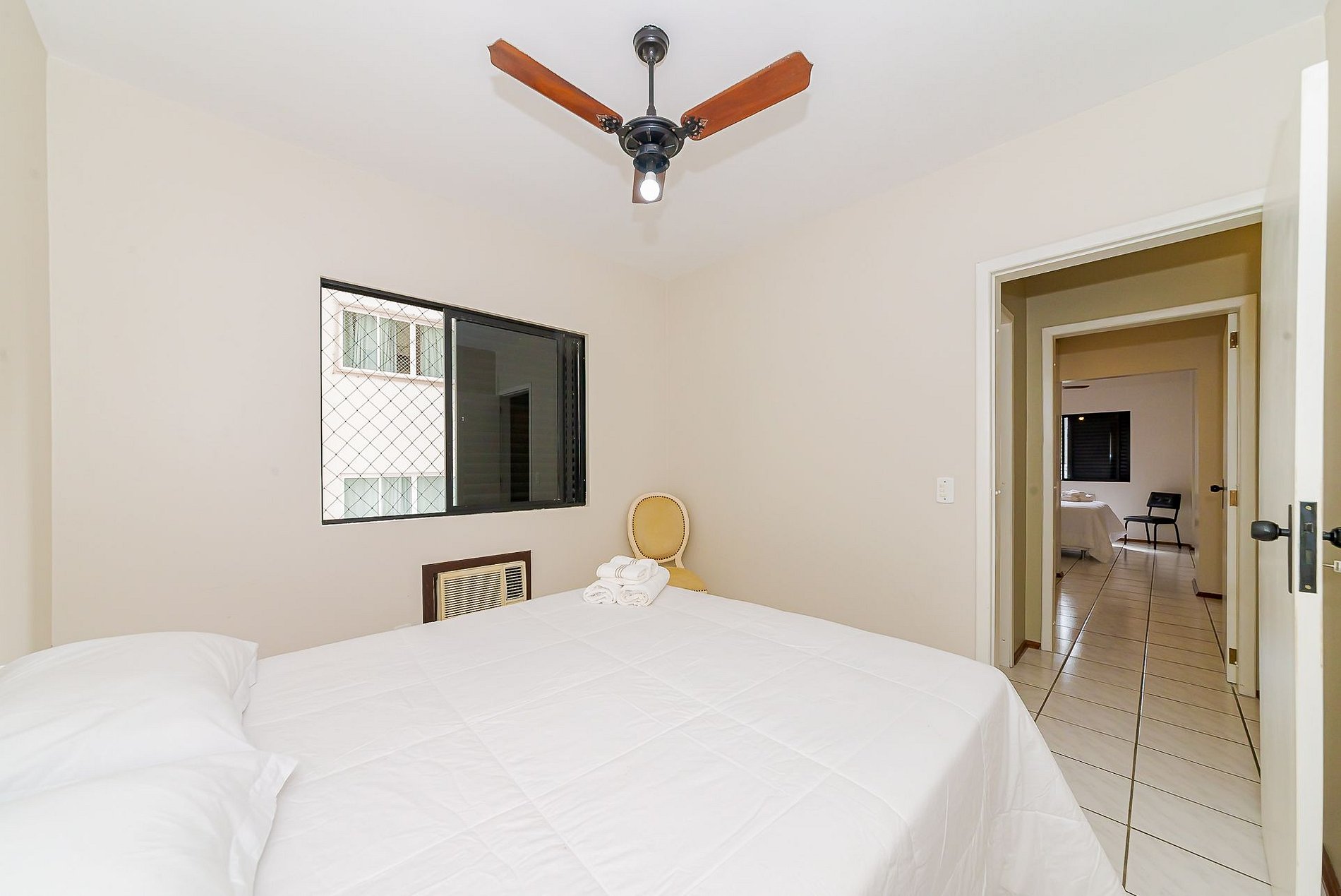 São 3 espaçosos quartos sendo 1 suítes mais 2 quartos, todos com cama de casal Queen, ar condicionado na suíte e em 1 quarto.