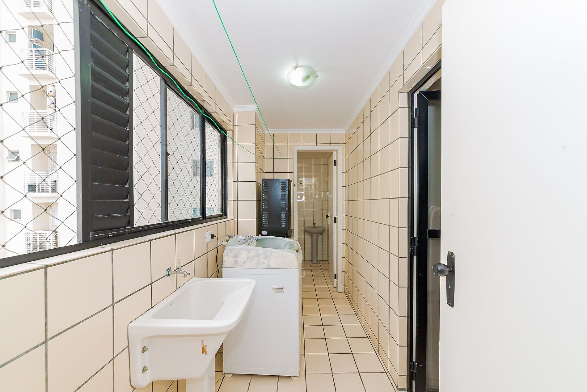 - Lavanderia com máquina de lavar e ferro de passar;